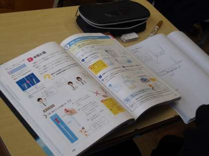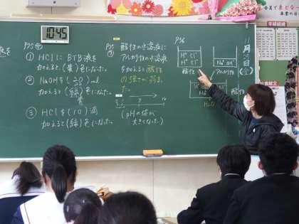 31学級は理科で「酸性とアルカリ性の水溶液を混ぜるとどうなるか」という課題で、中和についての学習を行っていました。