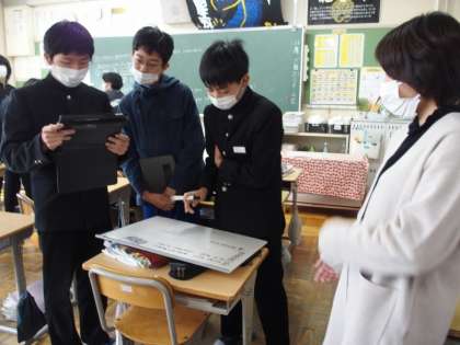 日本のものを外国の方に紹介するために、関係代名詞を使ってどんな文を作ったらよいかをグループで考えていました。