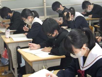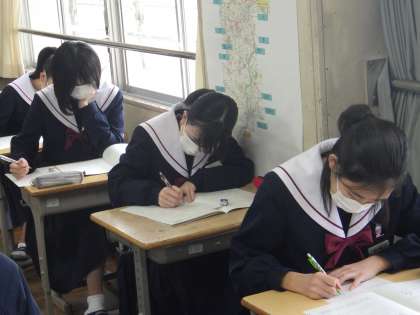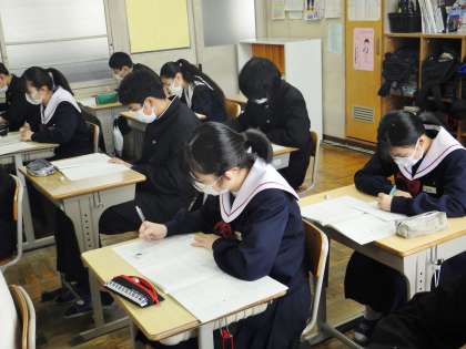 34学級は、理科の授業の様子です。来週行われる学習診断テストに向けて対策プリントを行っていました。