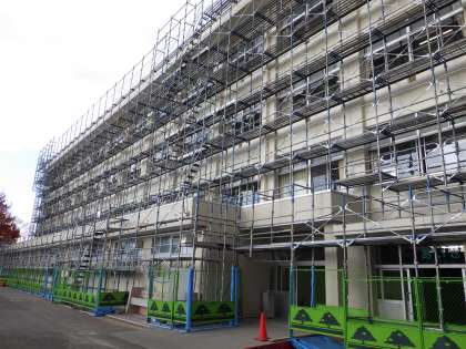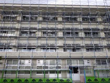 塗装が完了した場所の足場の撤去は来週に行われます。もうしばらく不自由な状態が続きますが、よろしくお願いいたします。