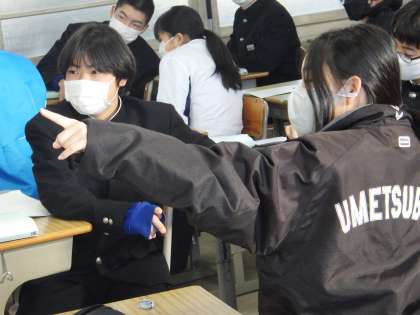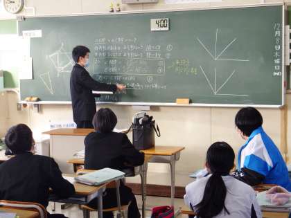 21学級は、数学の「証明」の授業の様子です。話し合いの場面では、積極的に前に出て、解き方・考え方について、自分の考えを伝えていました。生徒同士が関わり合いながら、学習を進めていて、活力を強く感じました。