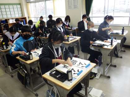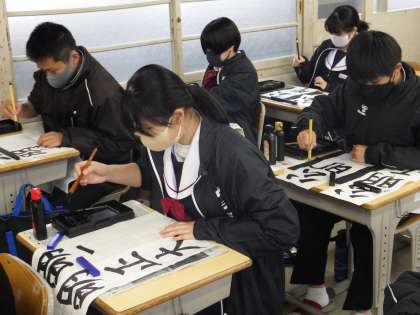 12/16(金) 書き初め大会に向けて頑張っています(1年生)