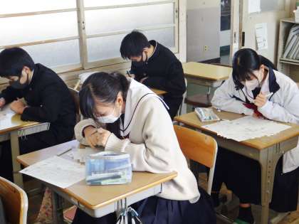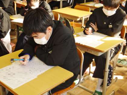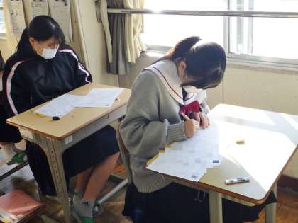 23学級は、国語の「漢詩の風景」の単元テストの様子です。一問一問集中して問題を解いていました。