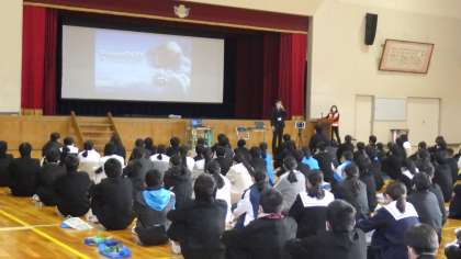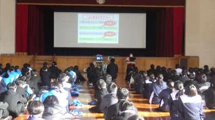 昨日、豊田警察署の方を講師として招き、情報モラル教室を行いました。豊田警察署の方から「SNSで知り合った人とは会わない」「SNSに嘘の書き込みをしない」など実際に起こった事例をもとに話がありました。また、「SNSを使用するときは、その先にどのようなトラブルが起こるのか想像力をはたらかせて対応する」「トラブルが起こったらすぐに大人に相談するなど一人で抱え込まない」と教えていただきました。生徒は、警察署の方を真剣に聞きながら、今後のスマートフォンやタブレット等の使い方について学んでいました。
