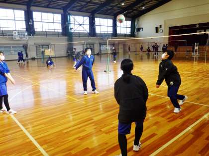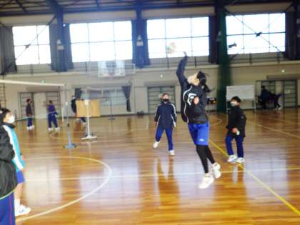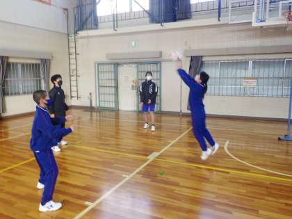 11学級は、体育の「バレーボール」の授業の様子です。この後行われる試合に向けて、グループで練習を行っていました。どのグループもお互いに声を掛け合うなどチームワークよく練習を行っていました。アタック練習を行っているグループもあり、驚きました。