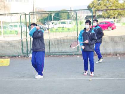 男子ソフトテニス部の活動の様子です。 サーブの練習を行っていました。