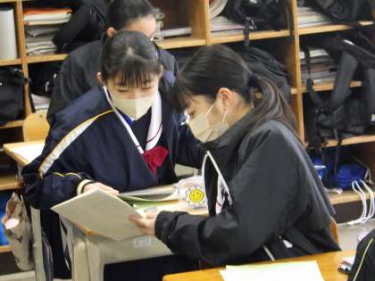 1/23(月) 授業の様子です(1年生) 3 公開日 2023/01/23 更新日 2023/01/23 お知らせ 13学級は、理科の授業の様子です。2月2日(木)に行われる学習診断テストに向けての対策プリントを行った後、間違いが多かった問題を中心に解き方の確認を行っていました。