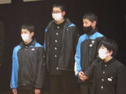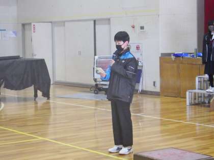入学説明会で歌う「旅立ちの時」のリハーサルを体育館で行っている様子です。