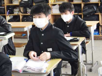 22学級は、社会の「韓国と中国」の授業の様子です。教師の説明に対して「え〜、そんなことがあったの!」「先生、そのことは学習用タブレットで調べました!」という声が聞こえてくるなど、積極的に取り組んでいる様子が伝わってきました。