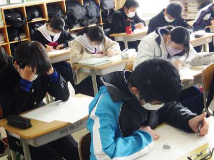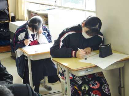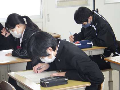 24学級は、数学の授業の様子です。今週の木曜日に行われる学習診断テストに向けて、対策プリントの問題を集中して解いていました。