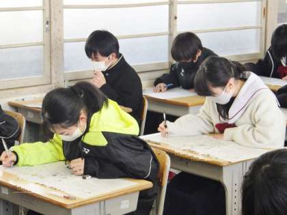 11学級は、音楽の授業の様子です。学期のまとめのテスト問題を集中して解いていました。
