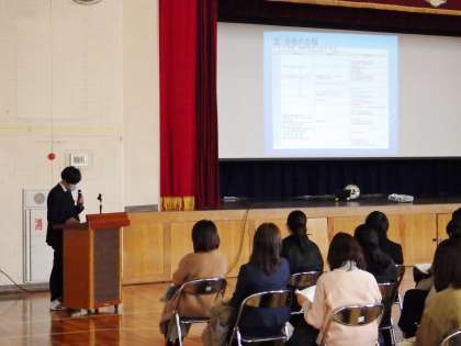 自然教室説明会では、スローガン発表プロジェクトの生徒が自然教室の学年スローガンを発表した後、学年主任、自然教室の担当教員が日程、持ち物、健康管理等について、説明を行いました。ご多用の中、ご来校ありがとうございました。