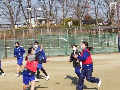 23学級は、体育の「アルティメット」の授業の様子です。試合を行っていました。ロングパス、ショートパスを相手の陣形を見ながら使い分けるなど、技術的、戦術的な上達を感じました。