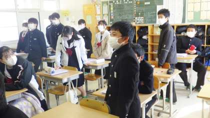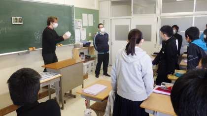 24学級は、英語の授業の様子です。ALTが英語で質問をし、それを英語で答えるゲームを楽しそうに行っていました。