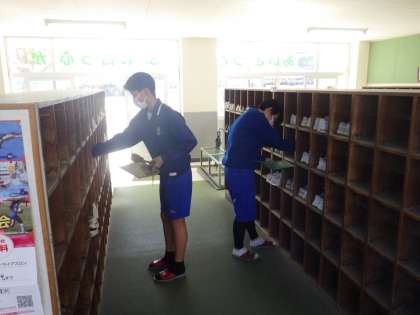 5,6限に、1、2年生が明日の卒業式に向けて準備を行いました。3年生のために、気持ちを込めて清掃活動、会場準備を行っていました。