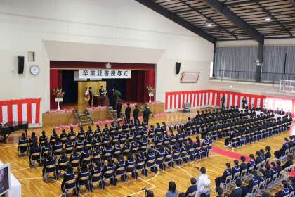3/7(火) 卒業証書授与式が行われました 1 公開日 2023/03/07 更新日 2023/03/07 お知らせ 本日、卒業証書授与式が行われました。 生徒たちの涙、教師の涙、体育館に響きわたる歌声、感動の卒業証書授与式でした。 すばらしい3年生、また、会える日を楽しみにしています。 ありがとうございました
