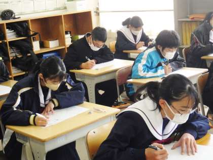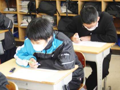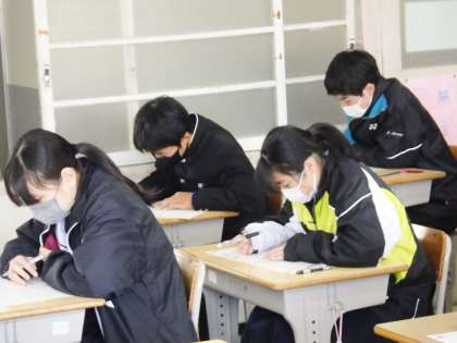 3/8(水) 授業の様子です(1年生) 3 公開日 2023/03/08 更新日 2023/03/08 お知らせ 13学級は、国語の「少年の日の思い出」の単元テストの様子です。放課に教科書を見ながらテスト勉強している生徒も数多くいました。その成果は、きっと出ると思います。