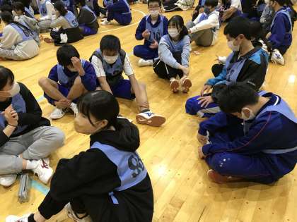 3/9(木) 自然教室1日目です 公開日 2023/03/09 更新日 2023/03/09 お知らせ 第2回戦は、ジェスチャーゲームです。 出されたお題を、言葉以外で表現し、班員が読み取ります。 優勝は21学級でした。 2年