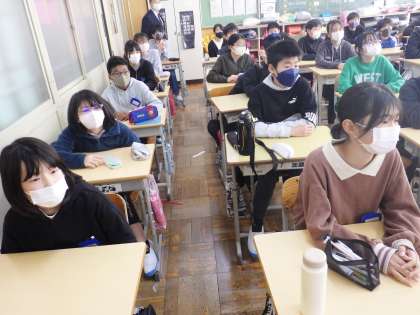 本日、梅坪小6年生が梅坪台中学校の教員による中学校模擬授業を体験しました。6年生は、国語、社会、英語の授業を受けながら、中学校の授業のイメージをふくらませていました。また、合わせて中学校の学校行事の様子を映像を見ながら、自分たちが中学校でどんなことをするのか確認していました。