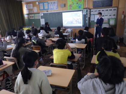 6年2組が中学校教員の授業を受けている様子です。