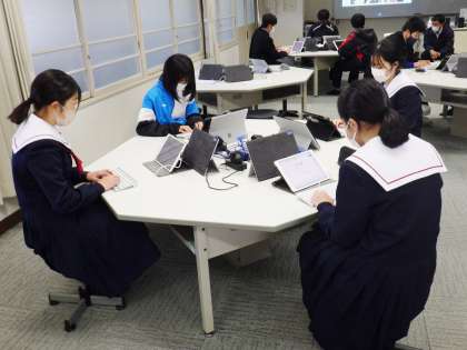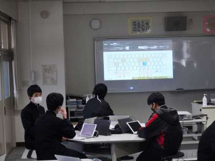 22学級は、技術の授業の様子です。タイピングの練習を行っていました。動画の映像を見ながら、キーボードを打ち、技能を高めていました。