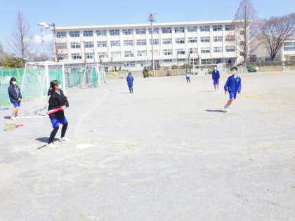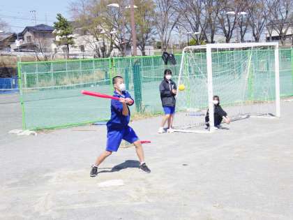 12学級は、体育の「ソフトボール」の授業の様子です。「よし、今日はWBC日本代表の〇〇になったつもりでホームランを打ってやるぜ!」という声が聞こえてきました。