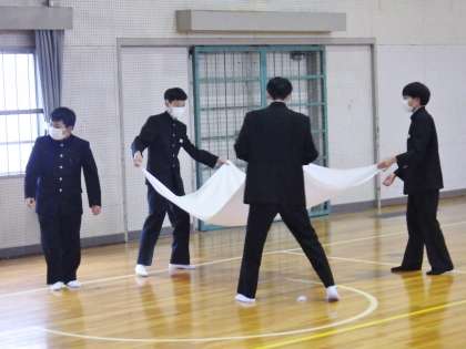 4/7(金) 3年生の有志が入学式会場の片づけを行いました 2