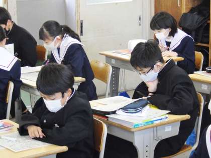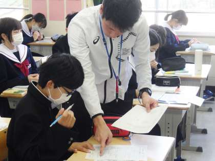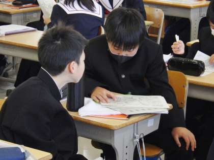 1年生にとって中学校で初めての朝の会です。緊張しながらも、担任の話を集中して聞いていて、すばらしいと思いました。
