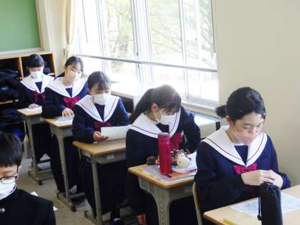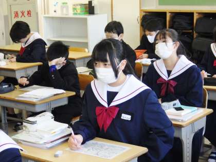 12学級の朝の会の様子です。地区集会の場所を確認していました。