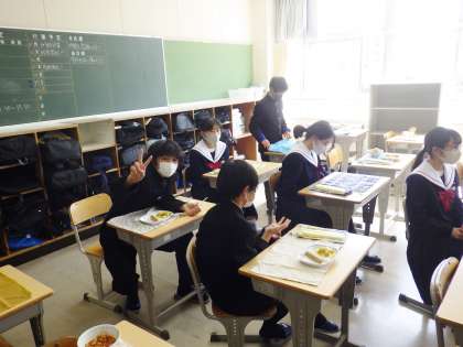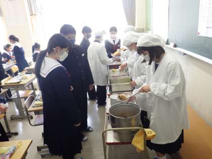 13学級の給食準備の様子です。