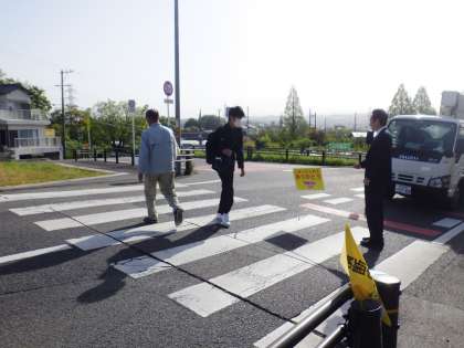 本年度も、学区の西山町の横断歩道で交通安全指導を行っています。