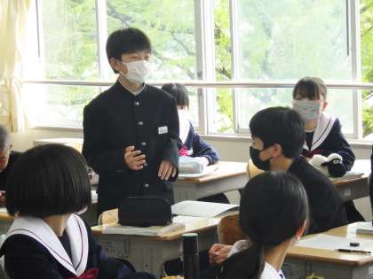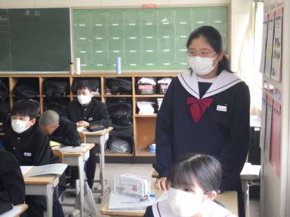 11学級は、家庭科の「授業開き」の様子です。「家庭科とは、どんな教科ですか?」と聞くと、積極的に挙手し、堂々と自分の考えを述べていました。