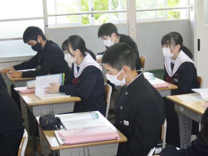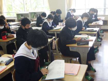 31学級は、国語の「授業開き」の様子です。1年間の学習の流れ等についての説明を集中して聞いていました。