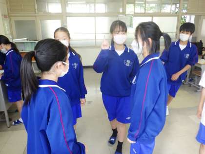 体育祭に向けて、学級の体育祭実行委員が生徒下校後、教室で話し合いを行いました。1年生とっては、初めての体育祭です。学級パフォーマンスタイムの振付や競技の走順を話し合っていました。