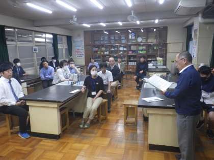 熱中症予防の動画を見ながら熱中症対応について確認した後、養護教諭、教頭が熱中症予防について具体的に話を行いました。今週から、いよいよ体育祭の練習も本格的に始まります。生徒の安全を第一にして、教育活動に取り組んでいきます。