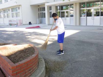 朝、昇降口前の落葉等を見た生徒が、清掃活動を行っていました。体育祭の練習等で疲れている中でも、学校のためにさりげなく実行できている姿を見て感動しました。