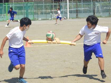 34学級は、体育の授業の様子です。体育祭の種目練習を行っていました。休憩中の生徒に「水分とった?」と聞くと「全部飲んでしまいました。明日は、もう少したくさん持ってきます」と返ってきました。明日、明後日は最高気温が30度を超える予報が出ています。水分を今までより多めに準備しておきましょう。