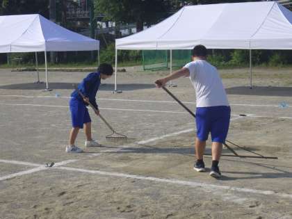 本日も多くの生徒が参加し、体育祭に向けて、運動場の環境整備や全校練習の準備を行っていました。こういう行動が学校を支えています。ありがとうございます。