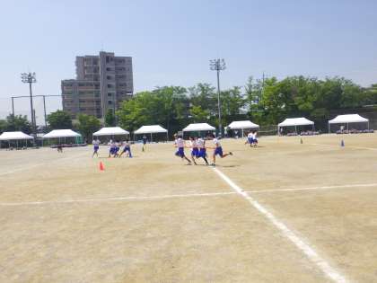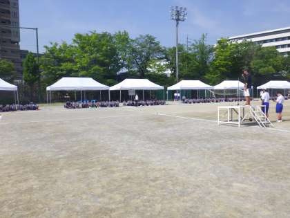 暑さを考慮し、1,2限に、体育祭の全校練習を行いました。説明は、テントの日陰で聞いています。ボール運びリレーなどの学年種目を中心に、入退場の動き、準備物の出し入れを確認しました。3年生の「Tug of War(綱引き)」は予選を行い、31学級と33学級が勝利しました。