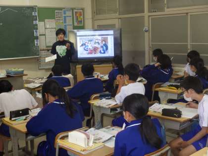 12学級は、社会の「雪と氷の中で暮らす人々」の授業の様子です。イヌイットの暮らしについて、デジタル教科書の映像を見ながら、確認していました。