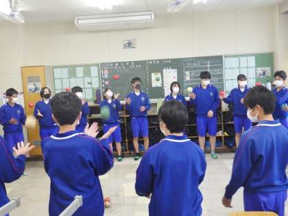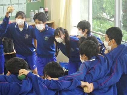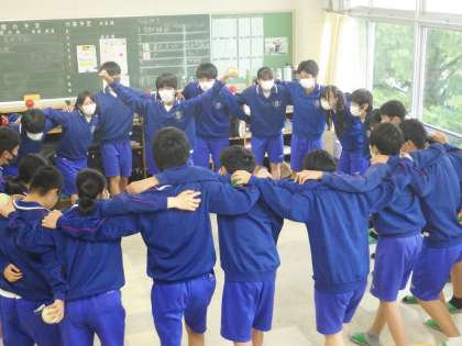 明日の体育祭に向けて学級の心を一つにするために学級開きで行った活動を行い、気持ちを高めていました。