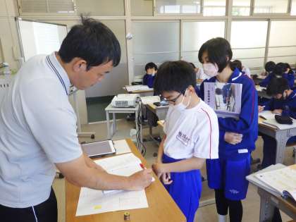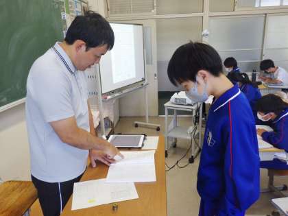 5/24(水) 授業の様子です(1年生) 2 公開日 2023/05/24 更新日 2023/05/24 お知らせ 12学級は、技術の「製図」の授業の様子です。立体を等角図や正投影図で書き表していました。完成すると、教師と確認していました。