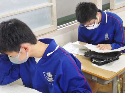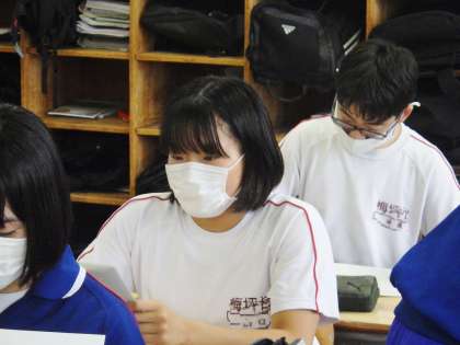 33学級は、国語の授業の様子です。前期中間テストの返却を行っていました。返却された後、「あ〜、解き方を勘違いしちゃった。問題文をしっかり読めばよかった」という声が聞こえてきました。次の定期テストでこの反省をいかしていきましょう。