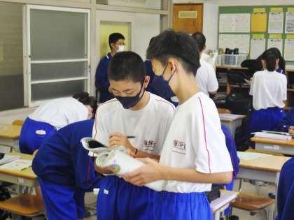 13学級は、英語の授業の様子です。将来、自分が就きたい職業について、級友と英語で尋ね合っていました。