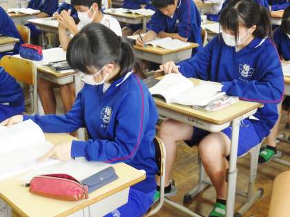 5限の学級活動の時間に、10月に行う合唱コンクールの選曲を行いました。合唱コンクールの候補曲を全員で聞き、どの曲にするか話し合っていました。3年生にとって、最後の合唱コンクールとなります。一生心に残る素敵な思い出ができればと思います。