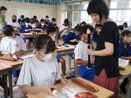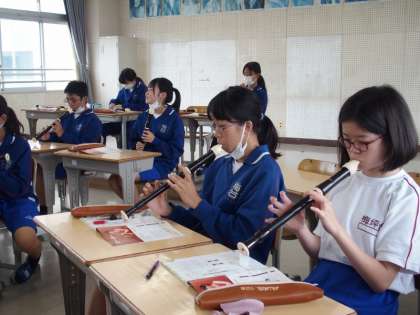 13学級は音楽でアルトリコーダーの扱い方を学んでいました。