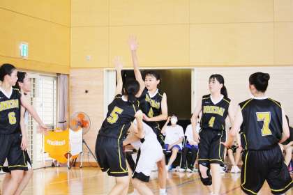 女子バスケットボール部の試合(準々決勝の崇化館中)の様子です。