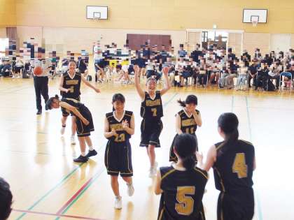 女子バスケットボール部の試合(準々決勝の崇化館中)の様子です。