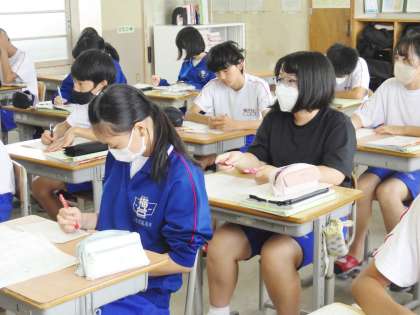 7/10(月) 授業の様子です(2年生) 2 公開日 2023/07/10 更新日 2023/07/10 お知らせ 22学級は、英語の「History of Clocks」の授業の様子です。本文の内容を学習プリントにまとめながら理解を深めていました。
