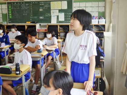 7/10(月) 授業の様子です(2年生) 3 公開日 2023/07/10 更新日 2023/07/10 お知らせ 23学級は、社会の「産業の発達と幕府政治の動き」の授業の様子です。デジタル教科書で江戸時代の農具を映像で確認した後、農具の変化について話し合っていました。農具の変化と生産技術の向上を結び付けた発言が多くあり、すばらしいと感じました。
